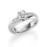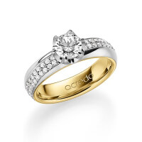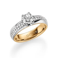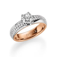 trouwring van acredo in buiten grijsgoud 14 kt. , binnen roodgoud 14 kt. Oppervlakte: gepolijst met 0,7 ct. + in totaal 0,672 ct. Briljant & Briljanten tw/si tw,vs