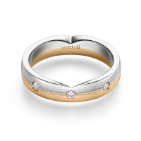 trouwring van acredo in witgoud 14 kt. roségoud 14 kt. Oppervlakte: gepolijst, gematteerd met in totaal 0,24 ct. Briljant tw/si