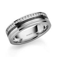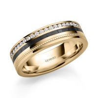 Memoire-trouwring van acredo in platina 950/- platina 950/- met Carbon indentation geelgoud 18 kt. Oppervlakte: gepolijst, gematteerd met in totaal 0,344 ct. Briljant tw/si