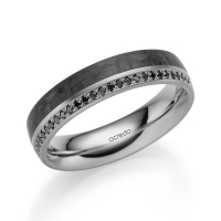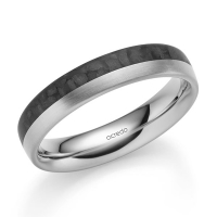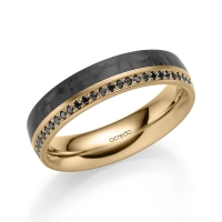 Memoire-trouwring van acredo in roodgoud 14 kt. met Carbon indentation Oppervlakte: gepolijst, gematteerd met in totaal 0,14 ct. Briljant Zwart