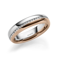 Memoire-trouwring van acredo in roségoud 14 kt. Oppervlakte: gepolijst met in totaal 0,2 ct. Briljant tw/si
