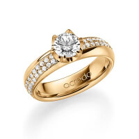 trouwring van acredo in buiten roségoud 14 kt. , binnen roségoud 14 kt. Oppervlakte: gepolijst met 0,7 ct. + in totaal 0,672 ct. Briljant & Briljanten tw/si tw,vs