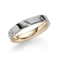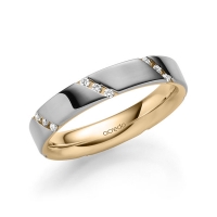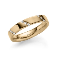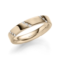 trouwring van acredo in buiten roségoud 14 kt. , binnen roségoud 14 kt. Oppervlakte: gepolijst met in totaal 0,21 ct. Briljant tw/si