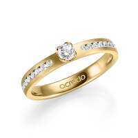 trouwring van acredo in geelgoud 14 kt. Oppervlakte: gematteerd met in totaal 0,39 ct. Briljanten & Briljant tw,vs tw/si