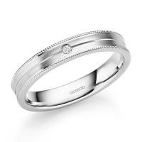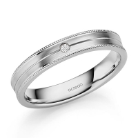 trouwring van acredo in grijsgoud 14 kt. Oppervlakte: gepolijst, gematteerd met in totaal 0,02 ct. Briljant tw/si