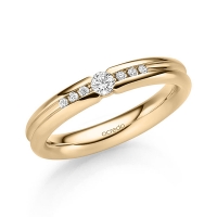 trouwring van acredo in roodgoud 14 kt. Oppervlakte: gepolijst met in totaal 0,16 ct. Briljant tw/si