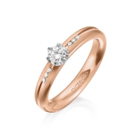 trouwring van acredo in roségoud 14 kt. Oppervlakte: gepolijst met in totaal 0,298 ct. Briljant & Briljanten tw/si