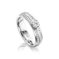 trouwring van acredo in witgoud 14 kt. Oppervlakte: gematteerd met 0,3 ct. + in totaal 0,672 ct. Briljant & Briljanten tw,vs
