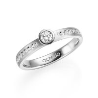 trouwring van acredo in witgoud 14 kt. Oppervlakte: gematteerd met in totaal 0,39 ct. Briljant & Briljanten tw/si tw,vs