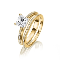 Ring-Set van Steinberg in roodgoud 18 kt. met 0,7 ct. + in totaal 0,15 ct. Princess-Diamant tw,vs