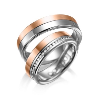 Set Memoire-trouwringen van acredo in dark grey gold 14 kt. roodgoud 14 kt. Oppervlakte: gepolijst, gematteerd met in totaal 0,47 ct. Briljant tw/si (Product 1 met steenzetting Product 2 zonder steenzetting)