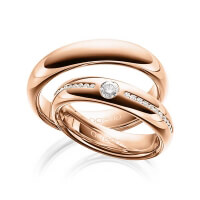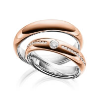 Set trouwringen van acredo in buiten roségoud 18 kt. , binnen platina 950/- Oppervlakte: gepolijst met in totaal 0,326 ct. Briljant tw,vs tw/si (Product 1 met steenzetting Product 2 zonder steenzetting)
