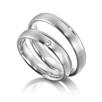 Set trouwringen van acredo in grijsgoud 14 kt. roodgoud 14 kt. Oppervlakte: gepolijst, gematteerd met in totaal 0,03 ct. Briljant tw/si (Product 1 met steenzetting Product 2 zonder steenzetting)