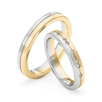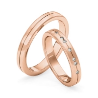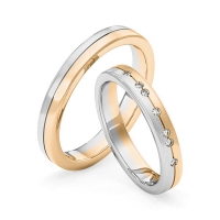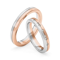 Set trouwringen van Merii in grijsgoud 14 kt. roodgoud 14 kt. Oppervlakte: gematteerd met in totaal 0,07 ct. Briljant tw,vs (Product 1 met steenzetting Product 2 zonder steenzetting)