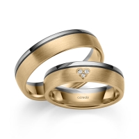 Set trouwringen van acredo in grijsgoud 14 kt. Signature Goud 585/- Oppervlakte: gepolijst, gematteerd met in totaal 0,021 ct. Briljant tw/si (Product 1 met steenzetting Product 2 zonder steenzetting)
