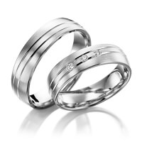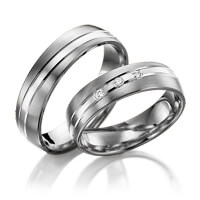 Set trouwringen van Steinberg in palladium 14 kt. zilver 925/- Oppervlakte: gematteerd met in totaal 0,06 ct. Briljant tw/si (Product 1 met steenzetting Product 2 zonder steenzetting)