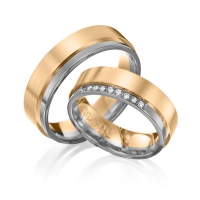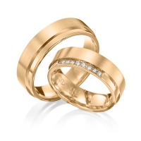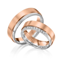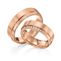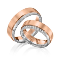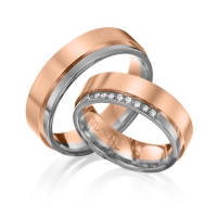 Set trouwringen van Eternal Touch in roodgoud 14 kt. geelgoud 14 kt. Oppervlakte: gepolijst, gematteerd met in totaal 0,09 ct. Briljant tw/si (Product 1 met steenzetting Product 2 zonder steenzetting)