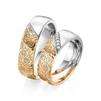 #123GOLD #trouwringen #vriendschapsringen #bruiloft #Bicolor #Meerkleurig #goud #roségoud #14kt #585 #witgoud14kt #Laseroppervlakte #Rozen #Bloemen #Machinalepavé #Briljant #Diamant
