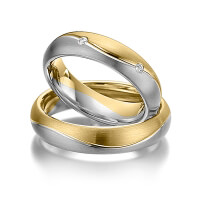 Set trouwringen van Steinberg in roségoud 14 kt. witgoud 14 kt. Oppervlakte: gematteerd met in totaal 0,12 ct. Briljant tw/si (Product 1 met steenzetting Product 2 zonder steenzetting)