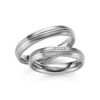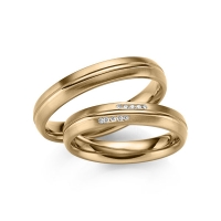 Set trouwringen van Eternal Touch in witgoud 14 kt. geelgoud 14 kt. Oppervlakte: gematteerd , gepolijst met in totaal 0,05 ct. Briljant tw/si (Product 1 met steenzetting Product 2 zonder steenzetting)