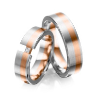 Set trouwringen van acredo in witgoud 14 kt. roodgoud 14 kt. Oppervlakte: gematteerd met in totaal 0,05 ct. Princess-Diamant tw/si (Product 1 met steenzetting Product 2 zonder steenzetting)