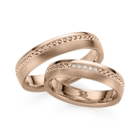 Set trouwringen van Eternal Touch in witgoud 14 kt. roségoud 14 kt. Oppervlakte: gepolijst, gematteerd met in totaal 0,025 ct. Briljant tw/si (Product 1 met steenzetting Product 2 zonder steenzetting)