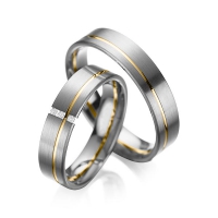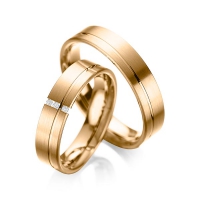 Set trouwringen van acredo in witgoud 14 kt. roségoud 14 kt. Oppervlakte: gematteerd , gepolijst met in totaal 0,03 ct. Briljant tw/si (Product 1 met steenzetting Product 2 zonder steenzetting)