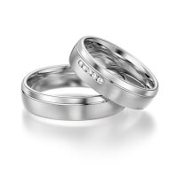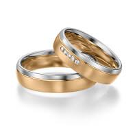 Set trouwringen van acredo in witgoud 14 kt. roségoud 14 kt. Oppervlakte: gepolijst, gematteerd met in totaal 0,05 ct. Briljant tw/si (Product 1 met steenzetting Product 2 zonder steenzetting)