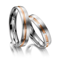 Set trouwringen van Eternal Touch in witgoud 14 kt. roségoud 14 kt. Oppervlakte: gematteerd , gepolijst met in totaal 0,05 ct. Briljant tw/si (Product 1 met steenzetting Product 2 zonder steenzetting)