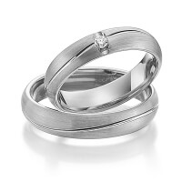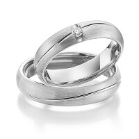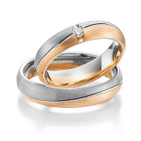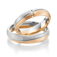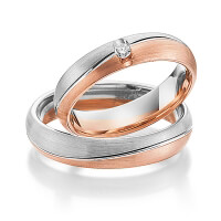 Set trouwringen van Steinberg in witgoud 14 kt. roségoud 14 kt. Oppervlakte: gematteerd met in totaal 0,05 ct. Briljant tw/si (Product 1 met steenzetting Product 2 zonder steenzetting)