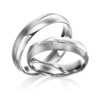 Set trouwringen van Steinberg in zilver 925/- palladium 14 kt. Oppervlakte: gepolijst, gematteerd met in totaal 0,02 ct. Briljant tw/si (Product 1 met steenzetting Product 2 zonder steenzetting)