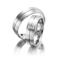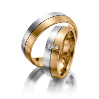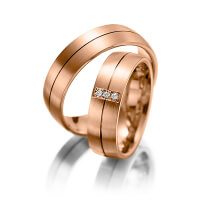 Set trouwringen van Merii in zilver 925/- roodgoud 14 kt. Oppervlakte: gematteerd met in totaal 0,03 ct. Briljant tw/si (Product 1 met steenzetting Product 2 zonder steenzetting)