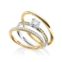 Set van acredo in geelgoud 14 kt. Oppervlakte: gepolijst met 0,5 ct. + in totaal 0,55 ct. Briljant & Briljanten tw/si tw,vs Geel