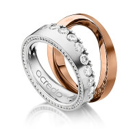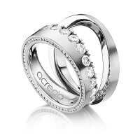 Set Memoire-trouwringen van acredo in witgoud 14 kt. Oppervlakte: gematteerd met in totaal 1,385 ct. Briljant tw/si (Product 1 met steenzetting Product 2 zonder steenzetting)