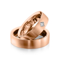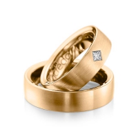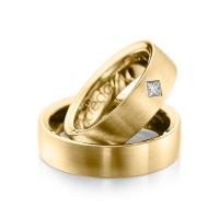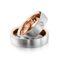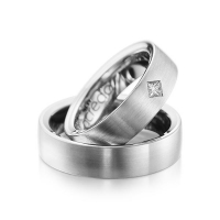 Set trouwringen van acredo in buiten grijsgoud 14 kt. , binnen grijsgoud 14 kt. Oppervlakte: gematteerd , gepolijst met in totaal 0,12 ct. Princess-Diamant tw/si (Product 1 met steenzetting Product 2 zonder steenzetting)