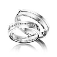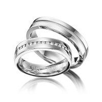 Set trouwringen van Eternal Touch in edelstaal Oppervlakte: gepolijst, zandmat fijn met in totaal 0,15 ct. Briljant tw/si (Product 1 met steenzetting Product 2 zonder steenzetting)