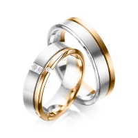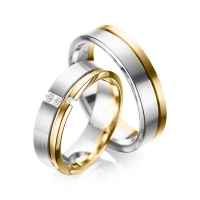 Set trouwringen van acredo in geelgoud 14 kt. Oppervlakte: gematteerd , gepolijst met in totaal 0,05 ct. Briljant tw/si (Product 1 met steenzetting Product 2 zonder steenzetting)