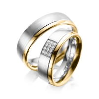 Set trouwringen van acredo in geelgoud 14 kt. Oppervlakte: gematteerd , gepolijst met in totaal 0,096 ct. Briljant tw/si (Product 1 met steenzetting Product 2 zonder steenzetting)