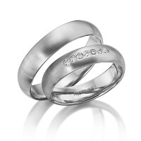 Set trouwringen van acredo in geelgoud 14 kt. Oppervlakte: gematteerd met in totaal 0,105 ct. Briljant tw/si (Product 1 met steenzetting Product 2 zonder steenzetting)