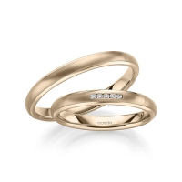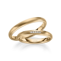 Set trouwringen van acredo in grijsgoud 14 kt. Oppervlakte: gepolijst, gematteerd met in totaal 0,04 ct. Briljant tw/si (Product 1 met steenzetting Product 2 zonder steenzetting)