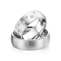 Set trouwringen van Steinberg in grijsgoud 14 kt. Oppervlakte: gematteerd met in totaal 0,12 ct. Briljant tw/si (Product 1 met steenzetting Product 2 zonder steenzetting)