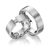 Set trouwringen van Eternal Touch in palladium 950/- Oppervlakte: gematteerd met in totaal 0,12 ct. Princess-Diamant tw/if (Product 1 met steenzetting Product 2 zonder steenzetting)