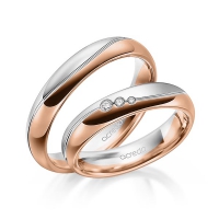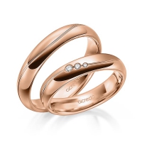 Set trouwringen van acredo in roodgoud 14 kt. Oppervlakte: gepolijst met in totaal 0,035 ct. Briljant tw/si (Product 1 met steenzetting Product 2 zonder steenzetting)