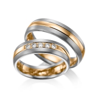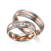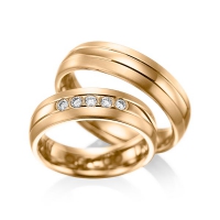 Set trouwringen van acredo in roodgoud 14 kt. Oppervlakte: gematteerd , gepolijst met in totaal 0,2 ct. Briljant tw/si (Product 1 met steenzetting Product 2 zonder steenzetting)