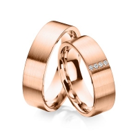 Set trouwringen van Steinberg in roségoud 14 kt. Oppervlakte: gematteerd met in totaal 0,04 ct. Briljant tw/si (Product 1 met steenzetting Product 2 zonder steenzetting)
