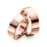 Set trouwringen van Steinberg in roségoud 14 kt. Oppervlakte: gepolijst met in totaal 0,12 ct. Briljant tw/si (Product 1 met steenzetting Product 2 zonder steenzetting)