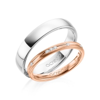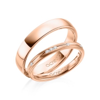 Set trouwringen van acredo in roségoud 14 kt. Oppervlakte: gematteerd , gepolijst met in totaal 0,14 ct. Briljant tw/si (Product 1 met steenzetting Product 2 zonder steenzetting)