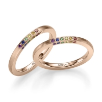 Set trouwringen van acredo in roségoud 14 kt. Oppervlakte: gepolijst met in totaal 0,432 ct. Briljant tw/si