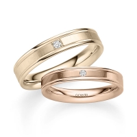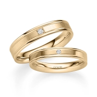 Set trouwringen van acredo in Signature Goud 585/- Oppervlakte: gepolijst, Overdwars mat met in totaal 0,045 ct. Briljant tw/si