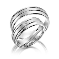 Set trouwringen van acredo in witgoud 14 kt. Oppervlakte: gepolijst, gematteerd met in totaal 0,02 ct. Briljant tw/si (Product 1 met steenzetting Product 2 zonder steenzetting)